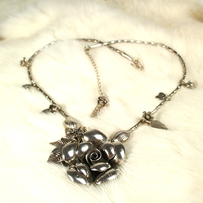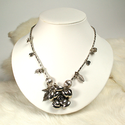 バラモチーフの存在感が素敵なラウンドタイプのネックレスです。