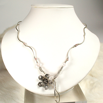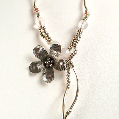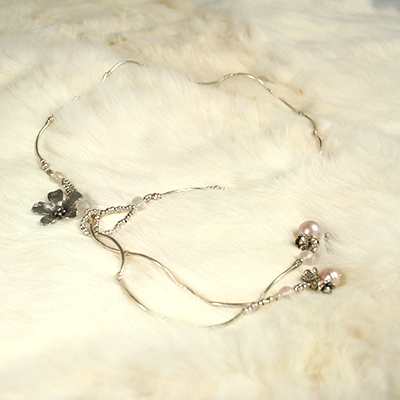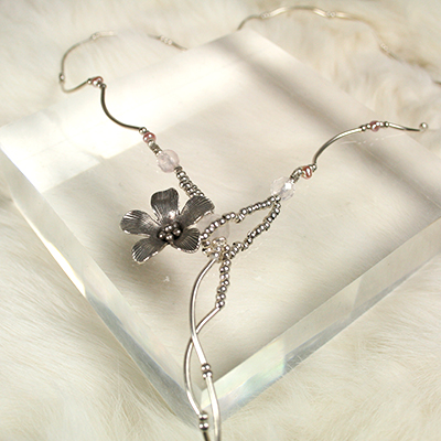 なみなみシルバーとハナミズキと淡水ピンクパール・アメジストが胸元で軽く揺れる愛らしく可愛いいラリエット